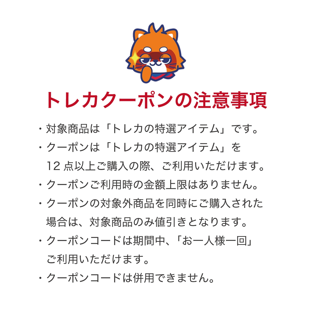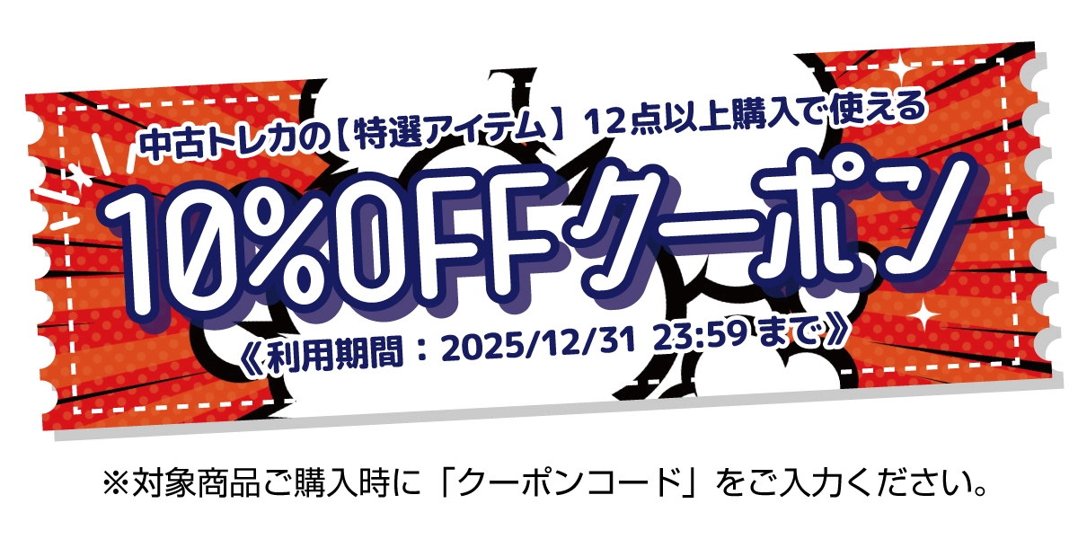 ※本クーポンは商品名に【特選アイテム】と表示のある中古トレカを12点以上ご購入の際にご利用いただけます。