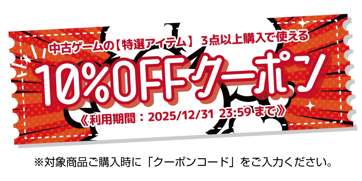 ※本クーポンは商品名に【特選アイテム】と表示のある中古ゲームを3点以上ご購入の際にご利用いただけます。