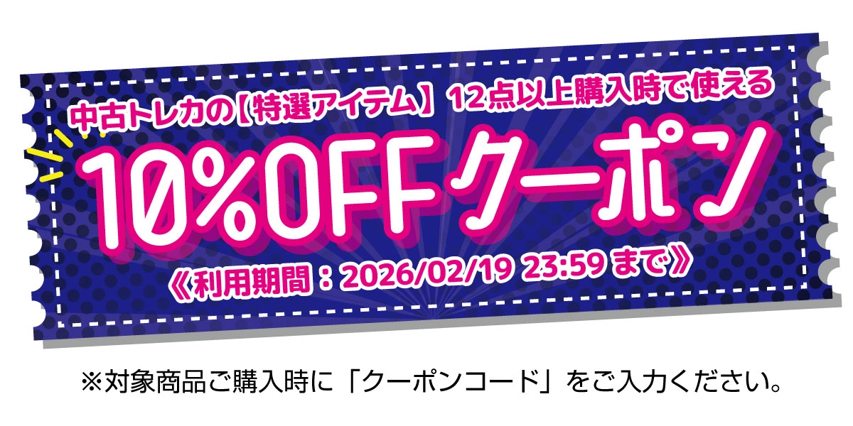※本クーポンは商品名に【特選アイテム】と表示のある中古トレカを12点以上ご購入の際にご利用いただけます。