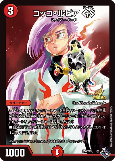 ■スター進化:レクスターズまたは光のクリーチャー1体の上に置く。(このクリーチャーが離れる時、かわりに一番上のカードが離れる)■W・ブレイカー■このクリーチャーが出た時または攻撃する時、カードを1枚引く。その後、コスト4以下のクリーチャーを1体、自分の手札から出してもよい。■自分のコスト4以下のクリーチャーはすべて「ブロッカー」を得、自分のターンの終わりにアンタップする。