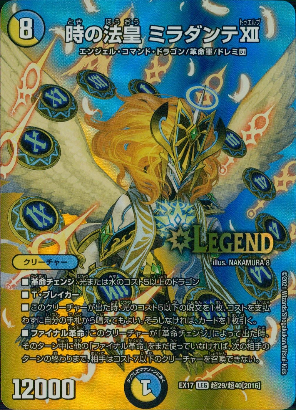 ■マナゾーンに置く時、このカードはタップして置く。■S・トリガー(この呪文をシールドゾーンから手札に加える時、コストを支払わずにすぐ唱えてもよい)■次のうちいずれかひとつを選ぶ。▶相手のクリーチャーをすべてタップする。▶カードを1枚引く。その後、光または水のコスト5以下の呪文を1枚、コストを支払わずに自分の手札から唱えてもよい。