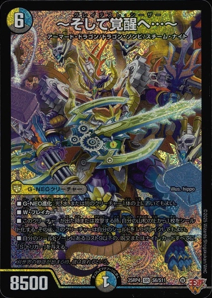 ■W・ブレイカー■このクリーチャーがバトルゾーンに出た時、火のコスト5以下のウエポンを1枚、自分の超次元ゾーンからバトルゾーンに出す。(このクリーチャーに装備する)■マナ武装7:このクリーチャーがバトルゾーンに出た時、自分のマナゾーンに火のカードが7枚以上あれば、火のコスト6以下のウエポンを1枚、自分の超次元ゾーンからバトルゾーンに出す。■同じ名前のウエポンを2枚以上、このクリーチャーに装備することはできない。