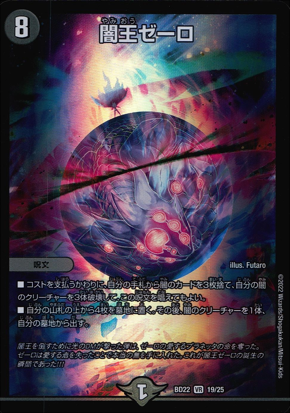 闇王を倒すために光のDMが撃った弾は、ゼーロの愛するプラネッタの命を奪った。ゼーロは愛する者を失ったことで本当の無を手に入れた。これが闇王ゼーロの誕生の瞬間であった!!!