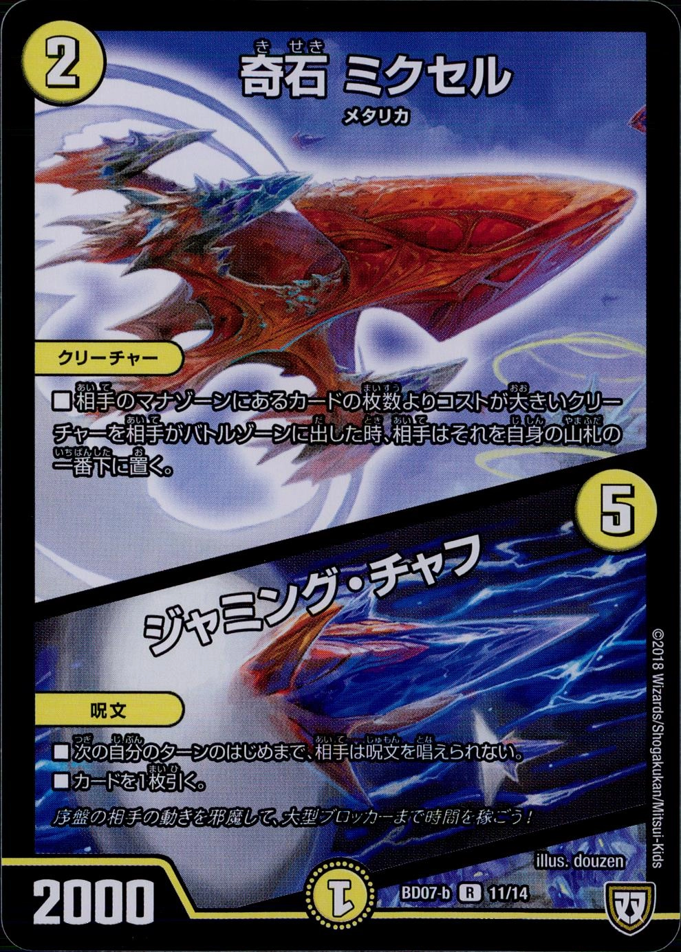 ■このクリーチャーが攻撃する時、自分の山札の上から1枚目をすべてのプレイヤーに見せてもよい。そのカードがドラゴンであればバトルゾーンに出し、ドラゴンでなければ自分の墓地に置く。■パワーアタッカー+1000(攻撃中、このクリーチャーのパワーは+1000される)