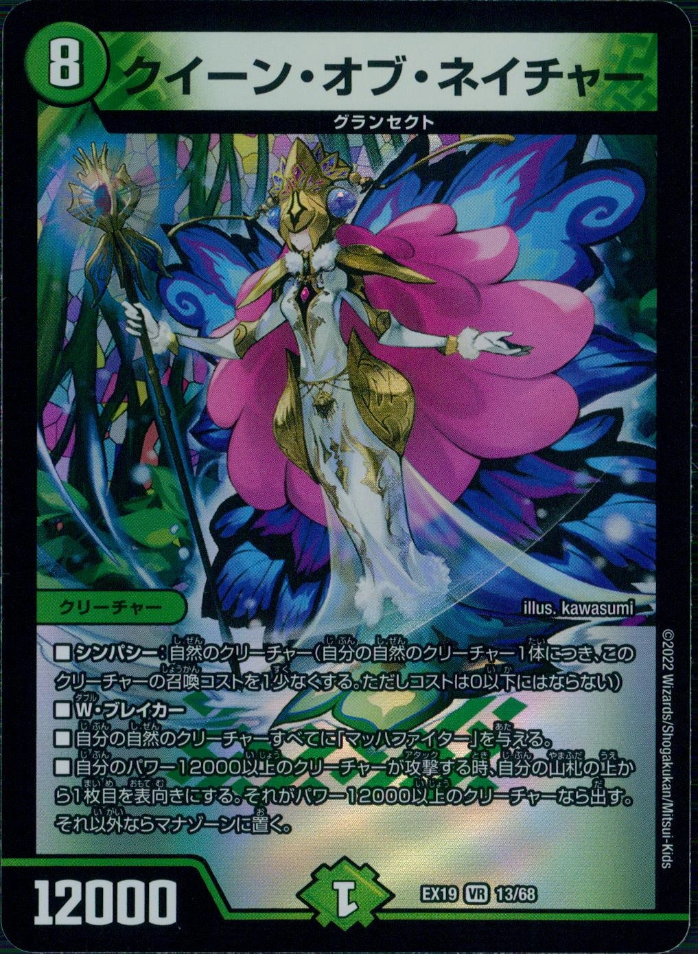 ■クロスギア(自分のターン中、このクロスギアのコストを支払ってクリーチャー1体にクロスしてもよい。そのクリーチャーが離れても、このクロスギアは残る)■このクロスギアが出た時、自分の山札の上から3枚を見る。その中からサムライを好きな数選んで相手に見せ、手札に加える。残りを好きな順序で山札の下に置く。■これをクロスしたクリーチャーに「ブロッカー」を与える。(「ブロッカー」を持つクリーチャーをタップして、相手クリーチャーの攻撃先をそのクリーチャーに変更してもよい)