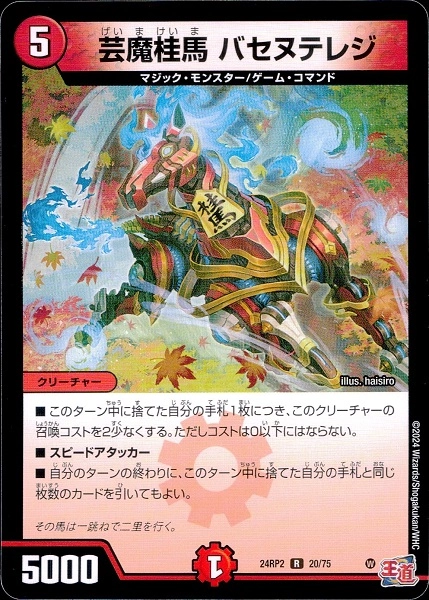 ■このターン中に捨てた自分の手札1枚につき、このクリーチャーの召喚コストを2少なくする。ただし、コストは0以下にはならない。■スピードアタッカー■自分のターンの終わりに、このターン中に捨てた自分の手札と同じ枚数のカードを引いてもよい。