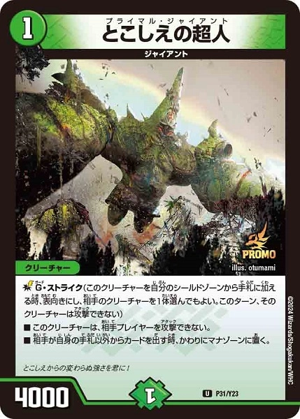 ■G・ストライク(このクリーチャーを自分のシールドゾーンから手札に加える時、相手に見せ、相手のクリーチャーを1体選んでもよい。このターン、そのクリーチャーは攻撃できない)■このクリーチャーは、相手プレイヤーを攻撃できない。■相手が自身の手札以外からカードを出す時、かわりにマナゾーンに置く。