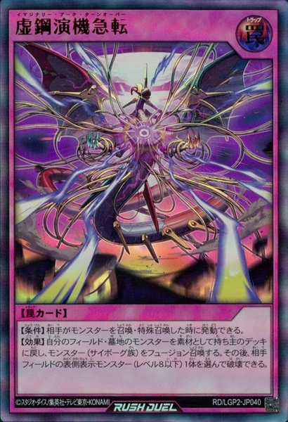 【条件】自分のデッキのカードが10枚以上の場合、デッキの上からカード2枚を墓地へ送って発動できる。【効果】このカードのカード名は次の相手ターン終了時まで、「イマジナリー・アクター」になる。その後、自分の墓地の「死者転生」1枚を選んでデッキの下に戻す事ができる。戻した場合、さらに自分は2枚ドローできる。